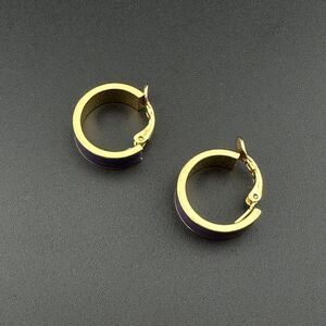 Vintage Sarah Coventry Gold Tone Purple Enamel Hoop Clip On Earrings 3/4"