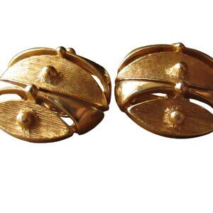 Vintage Sarah Coventry Gold-Tone Clip-On Earrings Textured Oval Retro Jewelry