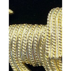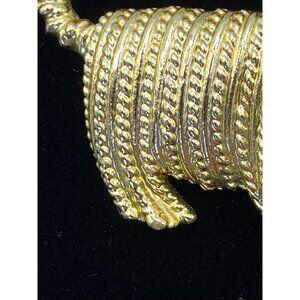 This intricately designed gold-tone brooch features a charming dog motif with elegant rope detailing, offering a sophisticated accessory for your collection.