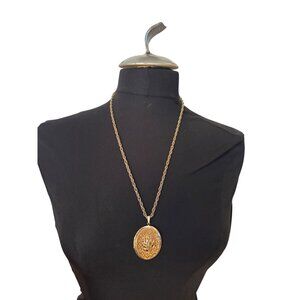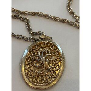 Vintage Sarah Coventry Gold-Tone Oval Monogrammed Pendant Necklace With Rope Cha