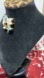 Gold tone metal, the leaves are white enamel while the berries are baby blue beads. Measurers 2 X 1.78 inches. The back pin has been replaced.