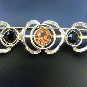 Vintage Sarah Coventry Linear Rhinestone SilverTone Brooch Collar Bar Pin