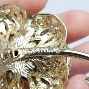 Vintage Sarah Coventry Pink AB Rhinestone Flower Brooch, Gold Tone Estate