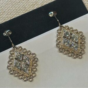 Vintage Sarah Coventry Rhinestone Clip Earrings Gold Rhinestone Party Dangle