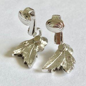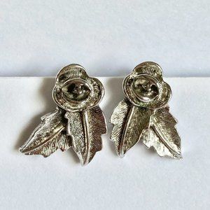 Vintage Sarah Coventry Rose Bud Flower Clip On Earrings Climber Silver Tone 70's
