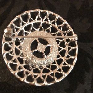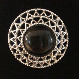 Vintage Sarah Coventry Round Silver-tone Black Brooch. In Excellent Condition. Approximately 1.5" Diamenter.