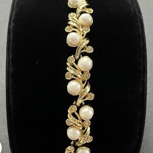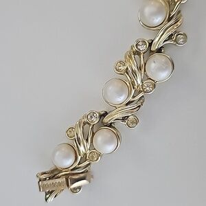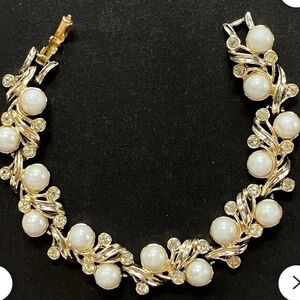 Vintage Sarah Coventry 'Royal Ballet' Gold tone with Faux Pearl/Rhinestone Link