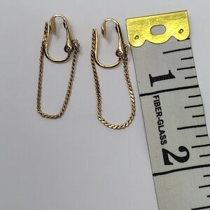 Vintage Sarah Coventry Signed Chain Hoop Drop Clip On Earrings Gold Tone Dainty