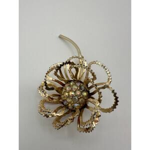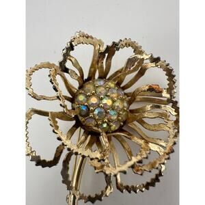 Vintage Sarah Coventry Flower Brooch with Aurora Borealis Rhinstones.