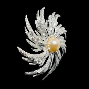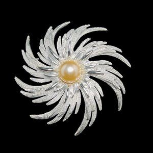 Vintage Sarah Coventry Silver Tone & Faux Pearl Starburst Pinwheel Brooch (4609)