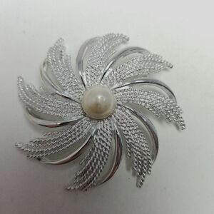 Vintage Sarah Coventry Silver Tone Flower Shape Brooch, Retro 80s Style