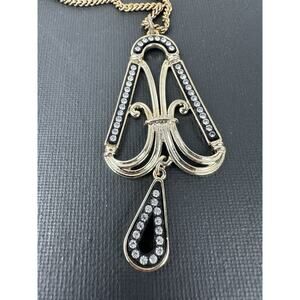 Vintage Sarah Coventry Silver Tone Pendant Necklace-Rhinestones & R'stone Dangle