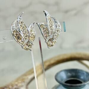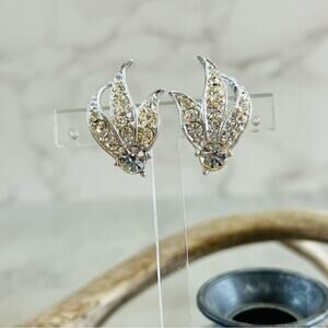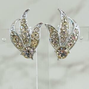 Vintage Sarah Coventry Silver Tone Rhinestone Clip Earrings Set of 2
