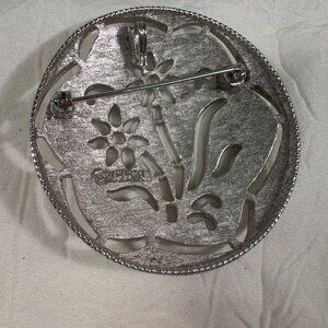 This vintage brooch whispers tales of timeless elegance. Crafted by Sarah Coventry, its delicate floral cutout design gleams in silver-tone, capturing the essence of nature's charm. This piece is not just an accessory; it's a story of craftsmanship and style, perfect for adorning your cherished attire or gifting a touch of vintage beauty.