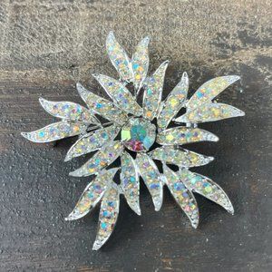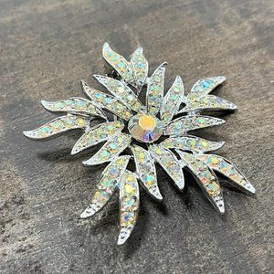 Vintage Sarah Coventry Silvertone AB Rhinestone Flower Silver Pin Brooch