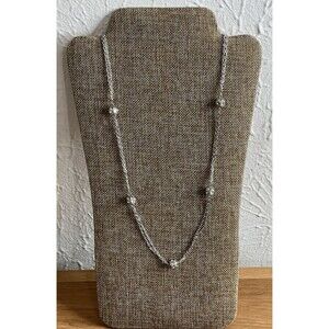 Vintage Sarah Coventry Station Necklace Silver Tone Double Strand Rhinestone