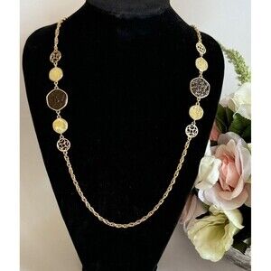BEAUTIFUL VINTAGE SARAH COVENTRY 'TASTE OF HONEY' NECKLACE, MEASURING 38 INCHES IN LENGTH. THIS ELEGANT AND VERSATILE PIECE FEATURES A TIMELESS DESIGN, PERFECT FOR LAYERING OR WEARING AS A STATEMENT ACCESSORY.
