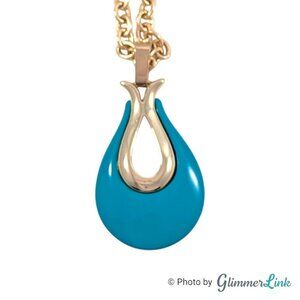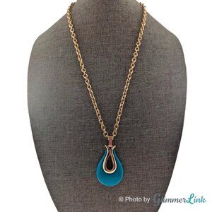 Vintage Sarah Coventry Triple Treat Teal Teardrop Gold Tone Pendant Necklace