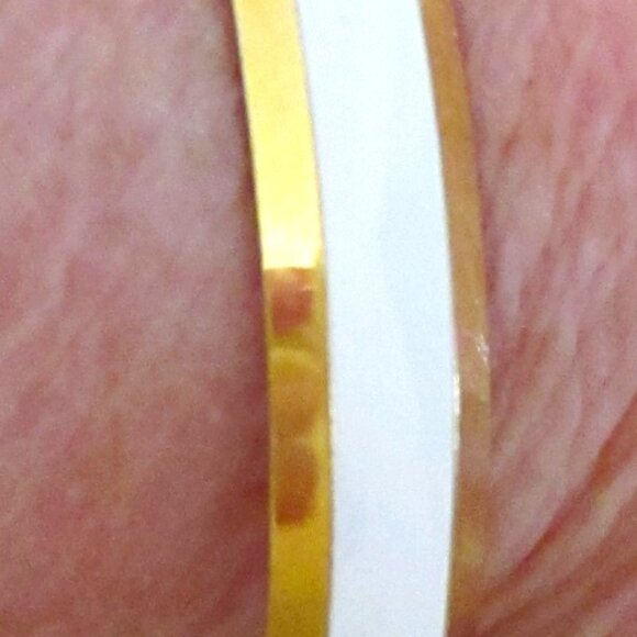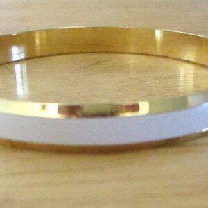 Vintage Sarah Coventry white enamel bangle bracelet with gold tone accent. Approximately 8" round. It fits me perfectly and I have a large wrist. This bracelet is in excellent pre-owned condition. No cracks, scratches or breaks.