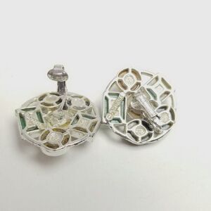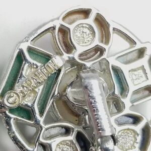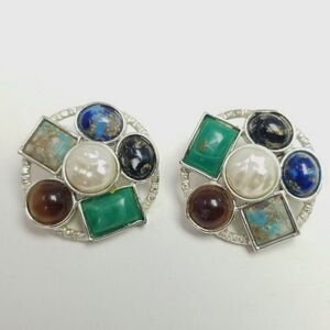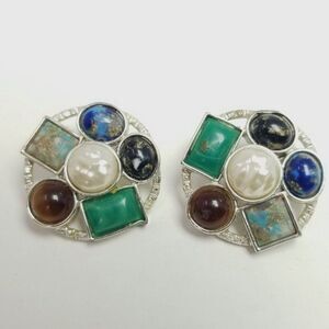 Vintage Sarah Coventry Blue Green Cabochon Clip On Earrings, Silver Tone Setting