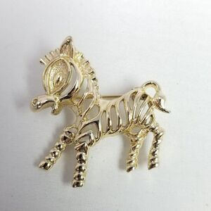 Vintage Sarah Coventry Zebra Shape Brooch, Gold Tone Filigree Design Lapel Pin