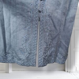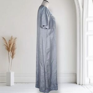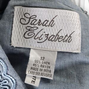 Vintage Sarah Elizabeth Linen Blend Sheath Maxi Dress Size 12 Button Embroidery