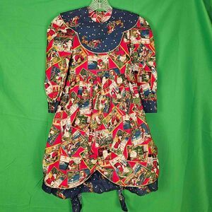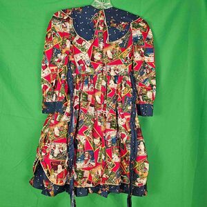 Vintage Sarah Kent Girls Christmas Santa Sleigh Dress 6X Postcard Patchwork