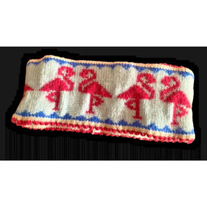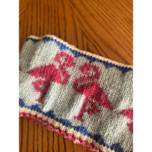 Vintage Sarita Wool Knitted Headband Flamingo Pattern Pink Blue White 80s Ski