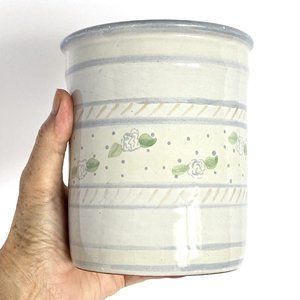 Vintage Sarospatak Red Ware Pottery Kitchen Tool Container or Vase Urn, Hand Painted, Made in Hungary.