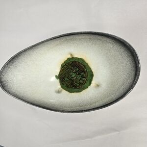 This vintage Sascha Brastoff MCM Flower Frog Bowl is a stunning piece of pottery that will add a touch of elegance to any room. The bowl features beautiful flower frog accents and gold reflective highlights that make it stand out from other pottery pieces. It is also signed by the artist, making it a unique addition to any collection.