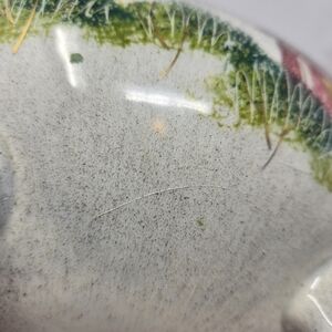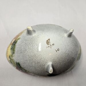 The bowl is perfect for those who love flowers and want to add a touch of nature to their home decor. It can be used as a decorative piece or as a functional flower frog bowl. The pottery is of high quality and will last for years to come. Don't miss out on this one-of-a-kind piece of art!