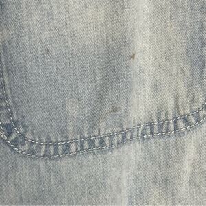Item in Good Vintage Condition. Women’s chambrey rose embroidered button down shirt, 100% cotton, made in united arab emirates, some spots, various faded sections, good denim materials, unique and perfectly faded overall. Unique one of a kind. PLEASE SEE ALL PHOTOS. Measurements taken laying flat: