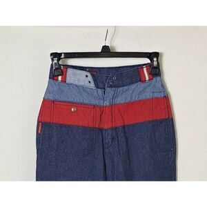 Vintage Sasson Jeans Blue Denim High Rise Lace Up Red Detail Made Hong Kong. Elevate your style with Vintage Sasson Jeans! The denim high rise Y2K lace up red jeans offer a unique style you won't find often. With classic Y2K styling, these jeans are sure to have heads turning. Crafted using premium quality material, they have perfect stitches and let you be fashionable in comfort. Made in Hong Kong, these red jeans are a classic piece of fashion which never goes out of style. Upgrade your wardrobe with Vintage Sasson Jeans and boast effortless styling.