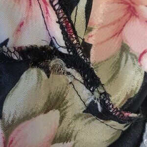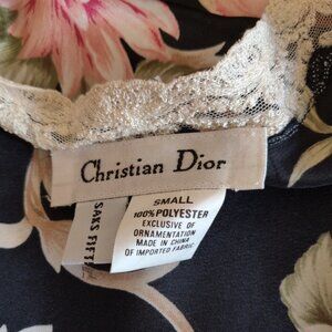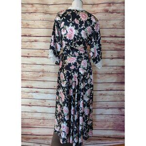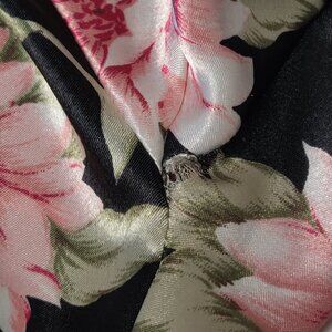 Vintage Sateen Black/Pink Floral Christian Dior Robe with Lace Trim