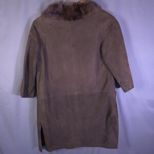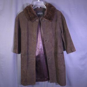 Vintage Saters Suade Coat Fur Collar Brown Size 8 3/4 Sleeve 60s Old Money