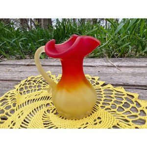 Vintage Satin Art Glass Amberina Ruffled Small Pitcher