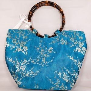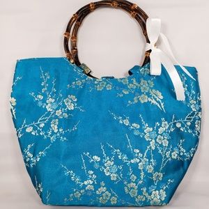 Vintage Satin Bamboo Handle Boat Tote, measures 8 x 13" in excellent condition.