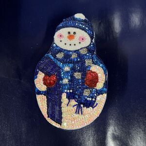 Vintage Satin‎ Beaded CHRISTMAS SNOWMAN Blue GIFT Trinket Candy Jewelry Box -D10