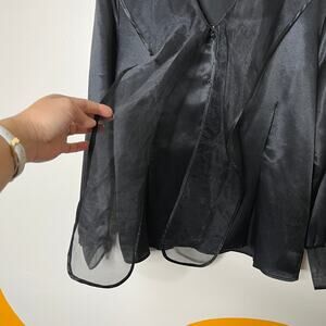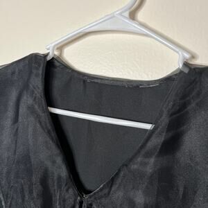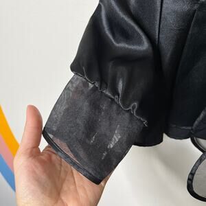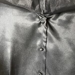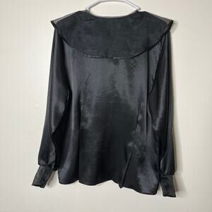 Vintage Satin Blouse Womens Whimsigoth Top L Witchy Long Sleeve V Neck Black