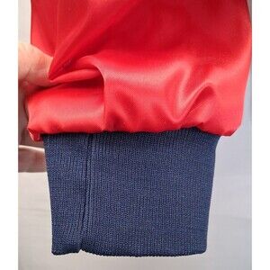 Make a statement with this iconic Budweiser vintage bomber jacket. Featuring the classic King of Beers logo, this red satin jacket is perfect for beer enthusiasts and fashion lovers alike. With its retro design and snap button closure, it's sure to turn heads at any casual outing or sporting event.