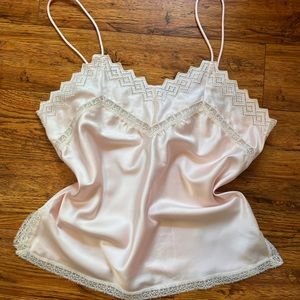 Vintage Bert Yelin for Ires (most like late 80s, early 90s) satin camisole with the most beautiful lace detail! The straps are not adjustable but would be easy to have altered.