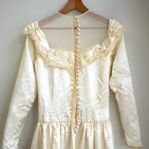 Vintage Satin Cream Lace Trim Wedding Dress Modern Size Medium