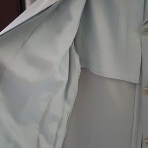 Formal seafoam green overcoat for gowns or formalwear. Falls below knee. Never worn. Lightweight with slit pockets. GORGEOUS!!