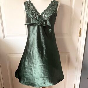 Vintage Satin Green Chemise with Lace Trim