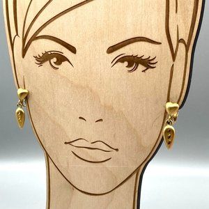 Vintage Satin Heart Earrings with Diamond Etched Dangle Drop, Classy Gold Tone