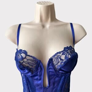 Vintage Satin Lace Wired U-Gore Bustier, Size S, Royal Blue
