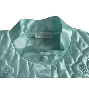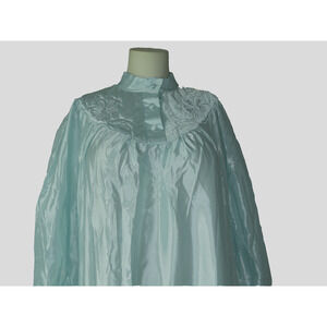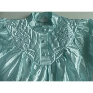 Vintage Satin Quilted Nightgown SMALL Modest Hight Neck Button Grannycore READ