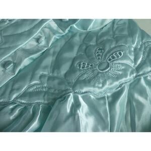 Vtg NOS 90s Satin Quilted Fleece Nightgown Floral Lace Button Grannycore Sz S