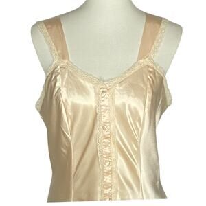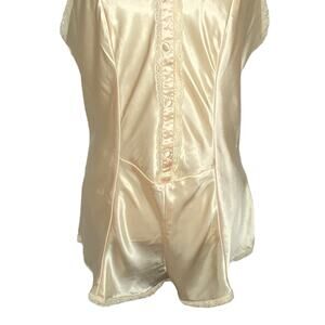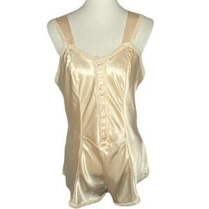 Vintage Satin Romper Teddy Lingerie Beige Bodysuit Large USA Coquette Romantic