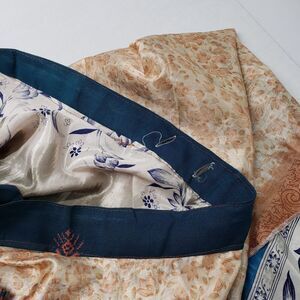 • Made with layered, satin-like, bohemian-style floral and paisley fabric